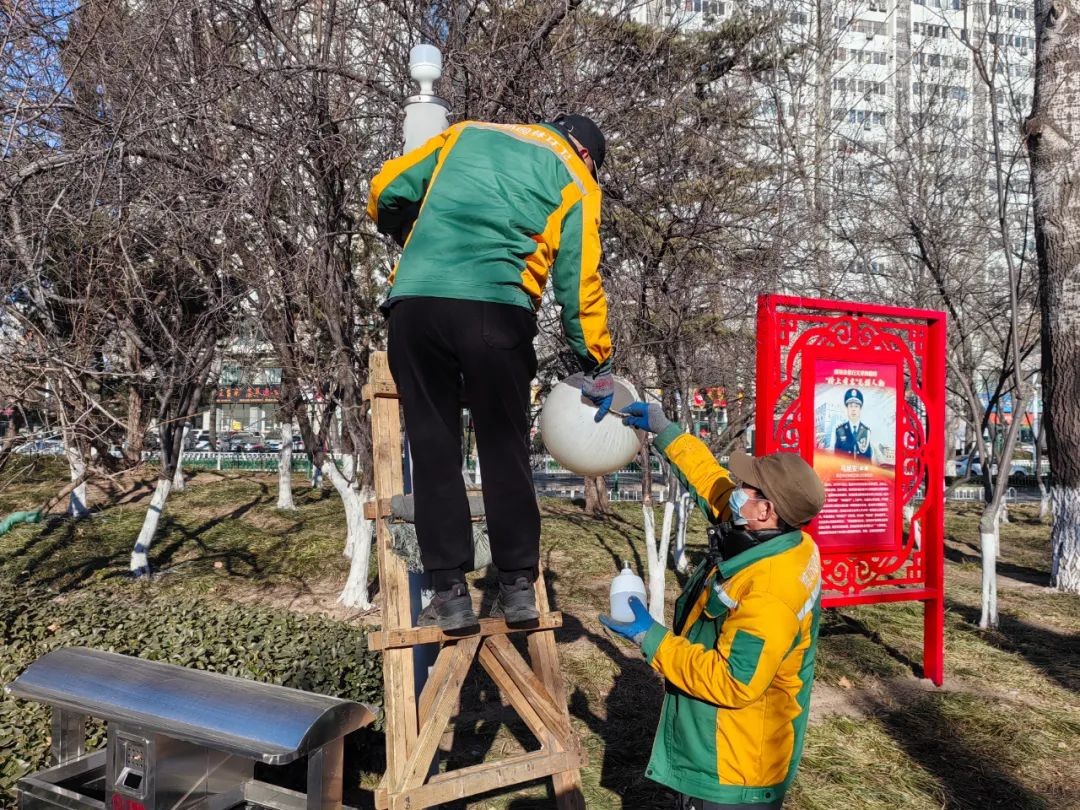 加强绿化精细管理,适时进行苗木补植,做好病虫害防控,开展精细化修剪,提升绿化档次,保障景观效果,组织直管绿地实施全面苗木修剪、浇灌返青水、树木松绑、扶撑架撤除等养护措施,推进北海路月季花增量和金叶女贞、红叶小檗更新,持续提升景观效果。